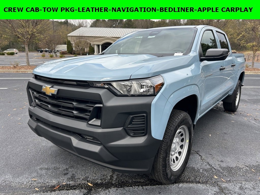 iPhone/ Android Navigation compatible, Automatic Headlights, Rearview Camera, Bluetooth, Leather, Towing Package / Hitch, EZ Lift and Lower Tailgate, Mutli-function Steering Wheel, Apple Carplay, ONSTAR, Push Button Start, Remote Keyless Entry, Andoid Auto, Premium Delivery Service Available, Colorado Work Truck, 4D Crew Cab, Snowdrift Metallic, Jet Black w/Evotex Seat Trim, 3.42 Rear Axle Ratio, 4-Spoke Wrapped Steering Wheel, 6-Speaker Audio System Feature, 8-Way Power Driver Seat Adjuster, Advanced Trailering Package, AM/FM radio: SiriusXM with 360L, Apple CarPlay/Android Auto, Automatic Emergency Braking, Automatic Locking Rear Differential, Chevy Safety Assist, Emergency communication system: OnStar, Evotex Seat Trim, Following Distance Indicator, Forward Collision Alert, Front Bucket Seats, Heavy-Duty Trailering Package, Integrated Trailer Brake Controller, Low tire pressure warning, Navigation System, Power Driver Lumbar Control Seat Adjuster, Preferred Equipment Group 2WT, Radio: 11.3 Diagonal Advanced Color LCD Display, Remote keyless entry, Steering Wheel Mounted Audio Controls, StowFlex Tailgate Storage Compartment, Tailgate Keyed Cylinder Lock, Trailering App, Wheels: 17 x 8 Ultra Silver Metallic Steel, Wireless Phone Projection, WT Convenience Package II. 2026 Chevrolet Colorado Work Truck Snowdrift Metallic 4D Crew Cab 2.7L I4 Turbocharged DOHC 16V LEV3-ULEV50 310hp RWD 8-Speed Automatic 20/24 City/Highway MPG