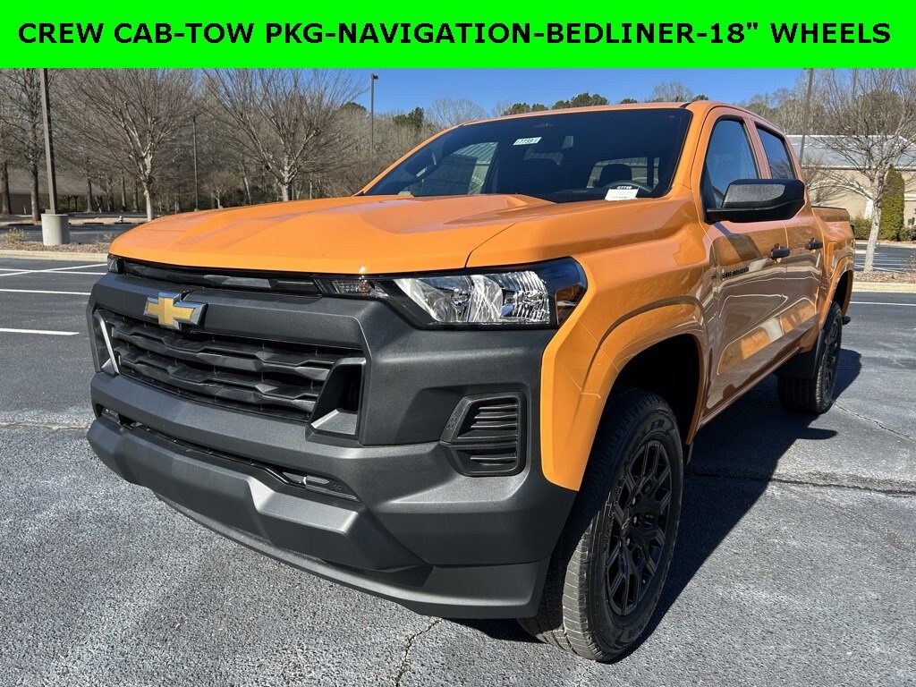 iPhone/ Android Navigation compatible, Automatic Headlights, Rearview Camera, Bluetooth, Towing Package / Hitch, Mutli-function Steering Wheel, Apple Carplay, ONSTAR, Push Button Start, Remote Keyless Entry, Andoid Auto, Premium Delivery Service Available, Colorado Work Truck, 4D Crew Cab, Sunrise Orange, Jet Black w/Cloth Seat Trim, 3.42 Rear Axle Ratio, 6-Speaker Audio System Feature, Advanced Trailering Package, Apple CarPlay/Android Auto, Automatic Emergency Braking, Automatic Locking Rear Differential, Black Nameplates, Blind Zone Steering Assist with Trailering, Chevy Safety Assist, Cloth Seat Trim, Emergency communication system: OnStar, Following Distance Indicator, Forward Collision Alert, Front Bucket Seats, Front Center Armrest, Front Pedestrian and Bicyclist Braking, Heavy-Duty Trailering Package, Integrated Trailer Brake Controller, IntelliBeam Automatic High Beam on/Off, Lane Keep Assist with Lane Departure Warning, Low tire pressure warning, Navigation System, Overhead airbag, Preferred Equipment Group 2WT, Radio: 11.3 Diagonal Advanced Color LCD Display, Remote keyless entry, SiriusXM with 360L Trial Subscription, Steering Wheel Mounted Audio Controls, Trailering App, Wheels: 18 x 8.5 Black High Gloss Aluminum, Wireless Phone Projection, WT Custom Package. 2026 Chevrolet Colorado Work Truck Sunrise Orange 4D Crew Cab 2.7L I4 Turbocharged DOHC 16V LEV3-ULEV50 310hp RWD 8-Speed Automatic 20/24 City/Highway MPG