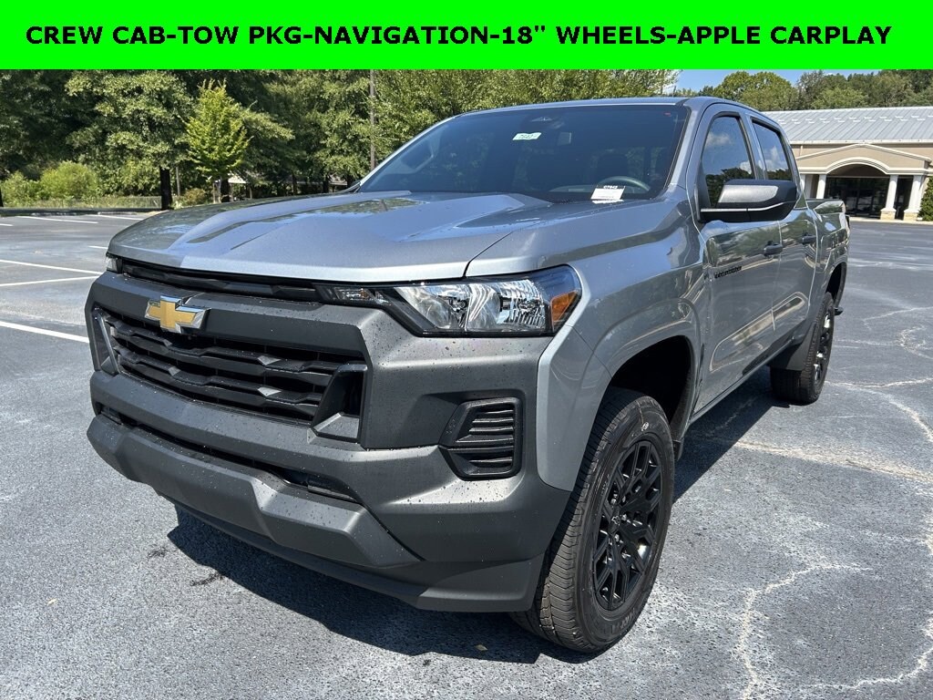 iPhone/ Android Navigation compatible, Automatic Headlights, Rearview Camera, Bluetooth, Towing Package / Hitch, Mutli-function Steering Wheel, Apple Carplay, ONSTAR, Push Button Start, Remote Keyless Entry, Andoid Auto, Premium Delivery Service Available, TINT, Colorado Work Truck, 4D Crew Cab, Sterling Gray Metallic, Jet Black w/Cloth Seat Trim, 3.42 Rear Axle Ratio, 6-Speaker Audio System Feature, Advanced Trailering Package, AM/FM radio: SiriusXM with 360L, Apple CarPlay/Android Auto, Automatic Locking Rear Differential, Black Nameplates (LPO), Blind Zone Steering Assist w/Trailering, Chevy Safety Assist, Cloth Seat Trim, Emergency communication system: OnStar, Following Distance Indicator, Forward Collision Alert, Front Bucket Seats, Front Pedestrian & Bicyclist Braking, Heavy-Duty Trailering Package, Integrated Trailer Brake Controller, Lane Keep Assist w/Lane Departure Warning, Low tire pressure warning, Navigation System, Occupant sensing airbag, Preferred Equipment Group 2WT, Radio: 11.3 Diagonal Advanced Color LCD Display, Remote keyless entry, SiriusXM w/360L Trial Subscription, Steering Wheel Mounted Audio Controls, Trailering App, Wheels: 18 x 8.5 Black High Gloss Aluminum, Wireless Phone Projection, WT Custom Package. 2026 Chevrolet Colorado Work Truck Sterling Gray Metallic 4D Crew Cab 2.7L I4 Turbocharged DOHC 16V LEV3-ULEV50 310hp RWD 8-Speed Automatic 20/24 City/Highway MPG