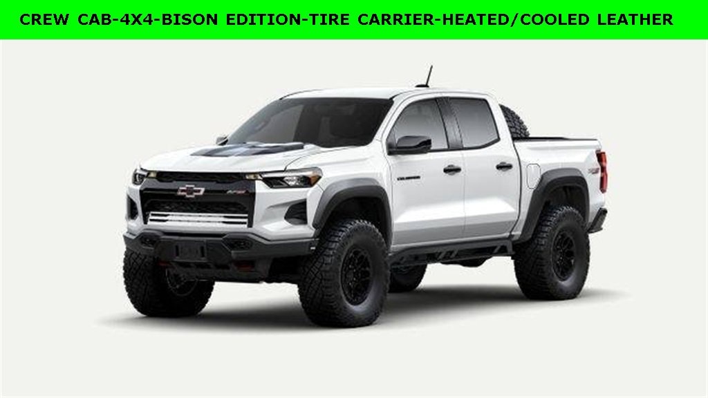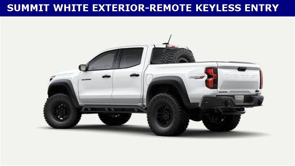 iPhone/ Android Navigation compatible, Automatic Headlights, Rearview Camera, Bluetooth, Heated and Vented Front Seats, Mutli-function Steering Wheel, 4X4, Apple Carplay, ONSTAR, Remote Keyless Entry, Andoid Auto, Premium Delivery Service Available, Colorado ZR2, 4D Crew Cab, 4WD, Summit White, Jet Black/Artemis w/Perforated Leather-Appointed Seat Trim, 3.42 Rear Axle Ratio, 6-Speaker Audio System Feature, Apple CarPlay/Android Auto, Automatic Emergency Braking, Automatic temperature control, Chevy Safety Assist, Driver Memory Settings, Emergency communication system: OnStar, Following Distance Indicator, Forward Collision Alert, Front dual zone A/C, Front Pedestrian & Bicyclist Braking, Heated front seats, Heated steering wheel, IntelliBeam Automatic High Beam On/Off, Lane Keep Assist w/Lane Departure Warning, Low tire pressure warning, Perforated Leather-Appointed Seat Trim, Power Driver Lumbar Control Seat Adjuster, Power driver seat, Preferred Equipment Group 4ZR, Radio: 11.3 Diagonal Advanced Color LCD Display, Remote keyless entry, SiriusXM w/360L Trial Subscription, Steering Wheel Mounted Audio Controls, Ventilated front seats, Wheels: 17 x 8 Graphite & Oxide Gold Aluminum, Wireless Phone Projection, ZR2 Off-Road Package. 2026 Chevrolet Colorado ZR2 Summit White 4D Crew Cab 2.7L I4 Turbocharged DOHC 16V LEV3-ULEV50 310hp 4WD 8-Speed Automatic 18/23 City/Highway MPG