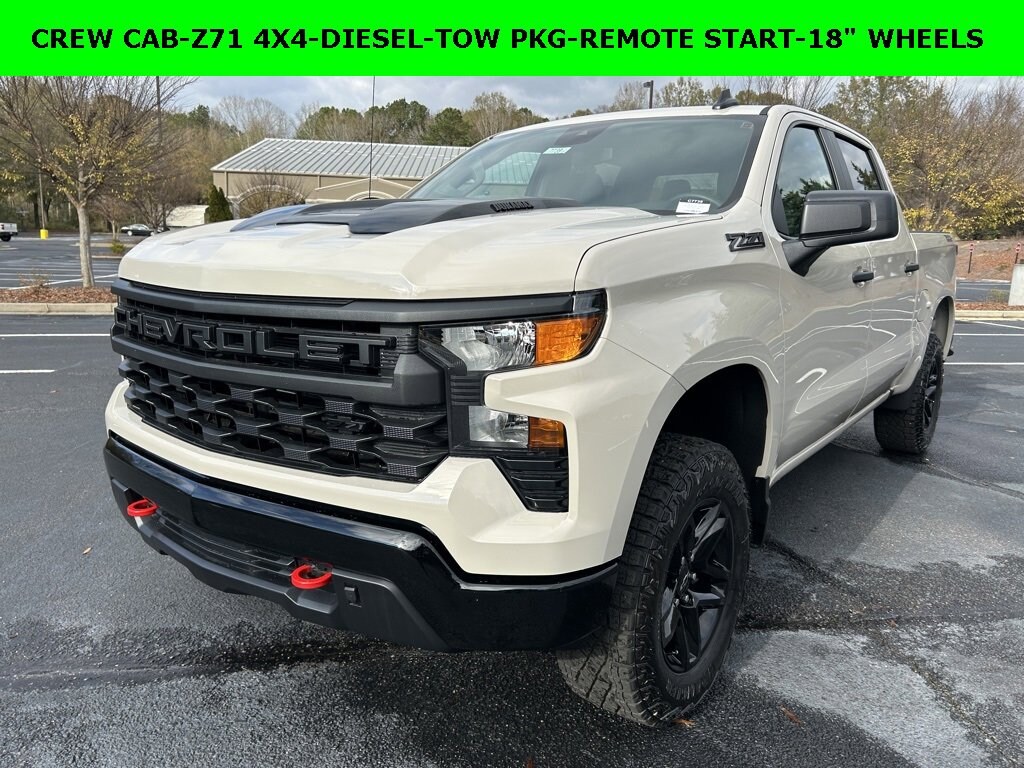 iPhone/ Android Navigation compatible, Automatic Headlights, Rearview Camera, Bluetooth, Towing Package / Hitch, Bedliner, Remote Starter System, LED Cargo Box Lighting, Mutli-function Steering Wheel, 4X4, Apple Carplay, ONSTAR, Push Button Start, Remote Keyless Entry, Andoid Auto, Premium Delivery Service Available, Silverado 1500 Custom Trail Boss, 4D Crew Cab, 3.0L I6, 10-Speed Automatic, 4WD, White Sands, Jet Black w/Cloth Seat Trim, 10-Way Power Driver Seat w/Lumbar, 120-Volt Bed Mounted Power Outlet, 120-Volt Interior Power Outlet, 220 Amp Alternator, 3.23 Rear Axle Ratio, 3.5 Monochromatic Display Driver Info Center, 40/20/40 Front Split-Bench Seat, Apple CarPlay/Android Auto, Auto-Locking Rear Differential, Bluetooth® For Phone, Chevytec Spray-On Black Bedliner, Cloth Seat Trim, Custom Convenience Package, Deep-Tinted Glass, Dual Rear USB Ports (Charge Only), Electric Rear-Window Defogger, Electronic Cruise Control, Emergency communication system: OnStar, EZ Lift Power Lock & Release Tailgate, Following Distance Indicator, Forward Collision Alert, Front Pedestrian Braking, HD Rear Vision Camera, Heavy-Duty Air Filter, Hill Descent Control, Hitch Guidance, Lane Keep Assist w/Lane Departure Warning, LED Cargo Area Lighting, Low tire pressure warning, Manual Tilt Wheel Steering Column, Multi-Flex Tailgate, OnStar Services Capable, Performance Red Recovery Hooks, Power driver seat, Power Front Windows w/Driver Express Up/Down, Power Front Windows w/Passenger Express Down, Power Rear Windows w/Express Down, Preferred Equipment Group 2CX, Rear 60/40 Folding Bench Seat (Folds Up), Remote Keyless Entry, Remote Vehicle Starter System, SiriusXM Trial Subscription, Standard Tailgate, Suspension Package, Teen Driver, Theft Deterrent System (Unauthorized Entry), Tire Pressure Monitoring System, Trailering Package, Wheels: 18 x 8.5 Black Painted Aluminum, Wi-Fi Hot Spot Capable. 2026 Chevrolet Silverado 1500 Custom Trail Boss White Sands 4D Crew Cab 3.0L I6 4WD 10-Speed Automatic 21/24 City/Highway MPG