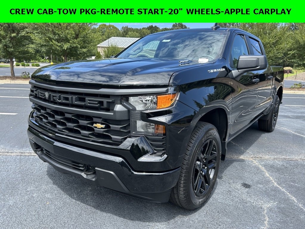 iPhone/ Android Navigation compatible, Automatic Headlights, Rearview Camera, Bluetooth, Towing Package / Hitch, Remote Starter System, EZ Lift and Lower Tailgate, LED Cargo Box Lighting, Mutli-function Steering Wheel, Apple Carplay, ONSTAR, Push Button Start, Remote Keyless Entry, Andoid Auto, Premium Delivery Service Available, Silverado 1500 Custom, 4D Crew Cab, Black, Jet Black w/Cloth Seat Trim, 10-Way Power Driver Seat w/Lumbar, 120-Volt Bed Mounted Power Outlet, 120-Volt Interior Power Outlet, 3.42 Rear Axle Ratio, 3.5 Monochromatic Display Driver Info Center, 40/20/40 Front Split-Bench Seat, AM/FM radio: SiriusXM, Apple CarPlay/Android Auto, Bluetooth® For Phone, Cloth Seat Trim, Custom Convenience Package, Custom Value Package, Deep-Tinted Glass, Dual Rear USB Ports (Charge Only), Electric Rear-Window Defogger, Electronic Cruise Control, Emergency communication system: OnStar, EZ Lift Power Lock & Release Tailgate, Following Distance Indicator, Forward Collision Alert, Front Frame-Mounted Black Recovery Hooks, Front Pedestrian Braking, HD Rear Vision Camera, High Capacity Suspension Package, Hitch Guidance, Lane Keep Assist w/Lane Departure Warning, LED Cargo Area Lighting, Low tire pressure warning, Manual Tilt Wheel Steering Column, OnStar Services Capable, Power driver seat, Power Front Windows w/Driver Express Up/Down, Power Front Windows w/Passenger Express Down, Power Rear Windows w/Express Down, Preferred Equipment Group 1CX, Rear 60/40 Folding Bench Seat (Folds Up), Remote Keyless Entry, Remote Vehicle Starter System, SiriusXM Trial Subscription, Standard Tailgate, Teen Driver, Theft Deterrent System (Unauthorized Entry), Tire Pressure Monitoring System, Trailering Package, Wheels: 20 x 9 High Gloss Black Painted Alum, Wi-Fi Hot Spot Capable. 2026 Chevrolet Silverado 1500 Custom Black 4D Crew Cab 2.7L I4 Turbocharged DOHC 16V LEV3-SULEV30 310hp RWD 8-Speed Automatic 18/21 City/Highway MPG