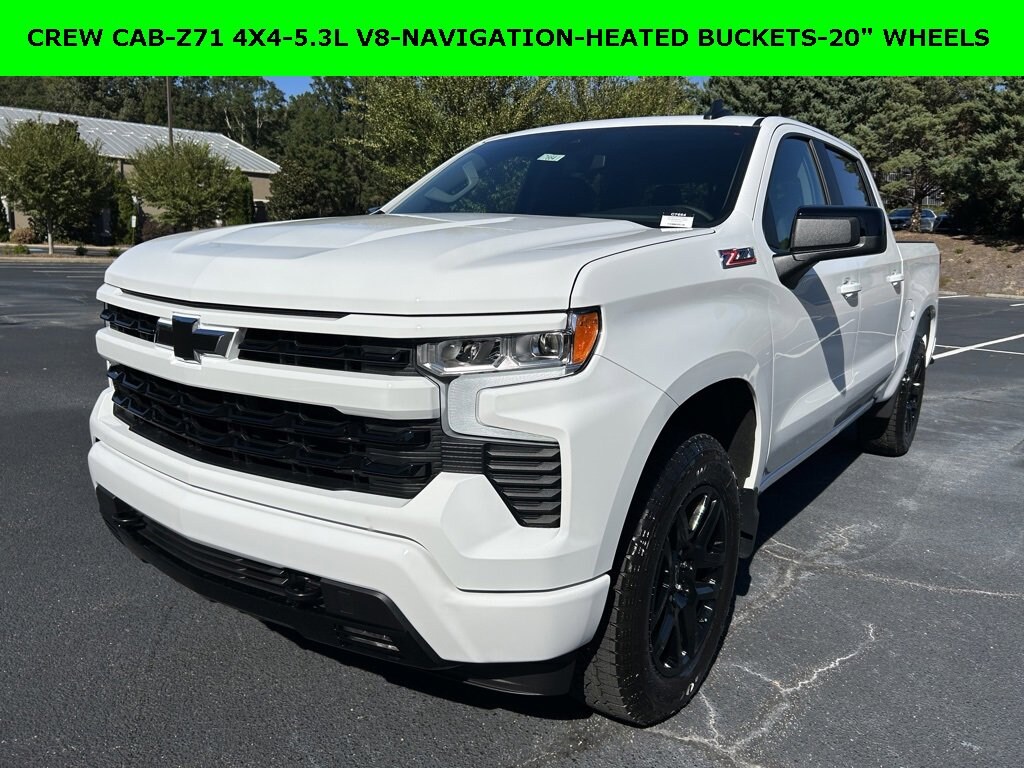 iPhone/ Android Navigation compatible, Automatic Headlights, Rearview Camera, Bluetooth, Towing Package / Hitch, Heated Front Seats, Heated Steering Wheel, Remote Starter System, LED Cargo Box Lighting, Bose Premium Speaker System, Mutli-function Steering Wheel, 4X4, Apple Carplay, ONSTAR, Push Button Start, Remote Keyless Entry, Andoid Auto, Premium Delivery Service Available, Silverado 1500 RST, 4D Crew Cab, EcoTec3 5.3L V8, 10-Speed Automatic, 4WD, Summit White, Jet Black w/Cloth Seat Trim, 10-Way Power Driver Seat w/Lumbar, 12.3 Multicolor Reconfigurable Digital Display, 120-Volt Bed Mounted Power Outlet, 120-Volt Interior Power Outlet, 170 Amp Alternator, 3.23 Rear Axle Ratio, All-Star Edition, Apple CarPlay/Android Auto, Auto-Locking Rear Differential, Automatic temperature control, Bluetooth® For Phone, Cloth Seat Trim, Convenience Package, Convenience Package II, Deep-Tinted Glass, Dual Exhaust w/Polished Outlets, Dual Rear USB Ports (Charge Only), Dual-Zone Automatic Climate Control, Electric Rear-Window Defogger, Electronic Cruise Control, Emergency communication system: OnStar, EZ Lift Power Lock & Release Tailgate, Following Distance Indicator, Forward Collision Alert, Front dual zone A/C, Front Frame-Mounted Black Recovery Hooks, Front LED Fog Lamps, Front Pedestrian Braking, HD Rear Vision Camera, Heated Driver & Front Outboard Passenger Seats, Heated front seats, Heated Power-Adjustable Outside Mirrors, Heated Steering Wheel, Heavy-Duty Air Filter, High Capacity Suspension Package, High Gloss Black Mirror Caps, Hill Descent Control, Hitch Guidance, Hitch Guidance w/Hitch View, In-Vehicle Trailering System App, Inside Rear-View Mirror w/Tilt, Integrated Trailer Brake Controller, Keyless Open & Start, Lane Keep Assist w/Lane Departure Warning, LED Cargo Area Lighting, Low tire pressure warning, Manual Tilt/Telescoping Steering Column, Multi-Flex Tailgate, Navigation System, Off-Road Suspension, OnStar Services Capable, Power driver seat, Power Front Windows w/Driver Express Up/Down, Power Front Windows w/Passenger Express Down, Power Rear Windows w/Express Down, Power Sliding Rear Window w/Rear Defogger, Preferred Equipment Group 1SP, Premium Bose Price does not include State/County/Local Tax, Tag, GA Lemon Law or Registration fees. Dealer administrative fee of $489 is included in the price. We offer electronic tag and title as an option for additional fee (this fee is based on what your state/county charge to participate as well as a fee to the company we select to process). A fee may be charged to customers wishing to have vehicle delivered. While we make every effort to ensure the data listed here is correct, there may be instances where some of the factory rebates, incentives, options or vehicle features may be listed incorrectly as we get data from multiple data sources. PLEASE MAKE SURE to confirm the details of this vehicle (such as what factory rebates you may or may not qualify for based on your residence/employment/financing) with the dealer to ensure its accuracy. Dealer can not be held liable for data that is listed incorrectly. You may also qualify for $1000 - GM Bonus Cash. Exp. 11/03/2025 $1250 - Chevrolet Trade Assistance Bonus Cash Program. Exp. 11/03/2025 $2000 - Chevrolet Consumer Cash Program. Exp. 11/03/2025 $500 - GM Rewards Card Sales Sign Up and Spend Offer. Exp. 01/02/2026 Savings applied to everyone. Offer includes up to $1500 finance assistance. Not available with special financing, lease and select other