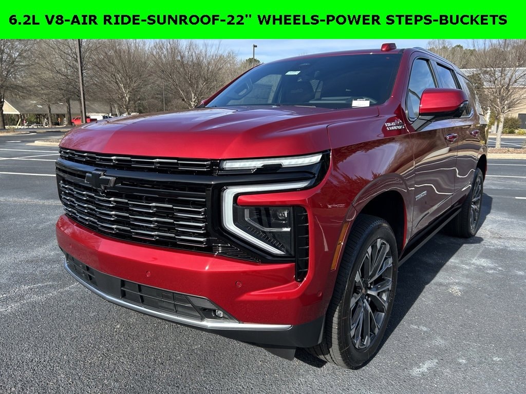 iPhone/ Android Navigation compatible, Automatic Headlights, Rearview Camera, Bluetooth, Leather, Sunroof / Moonroof, Running Boards, Heated and Vented Front Seats, Heated 2nd Row, Heated Steering Wheel, Remote Starter System, Bose Premium Speaker System, Mutli-function Steering Wheel, Apple Carplay, ONSTAR, 3rd Row Seats, Push Button Start, Remote Keyless Entry, Andoid Auto, Premium Delivery Service Available, Tahoe High Country, 4D Sport Utility, EcoTec3 6.2L V8, 10-Speed Automatic with Overdrive, Radiant Red Tintcoat, Jet Black/Mocha w/Perforated Leather Seat Trim, 15 Diagonal Multi-Color Head-Up Display, 3-Spoke Wrapped Steering Wheel, 3.23 Rear Axle Ratio, 3rd Row 60/40 Power-Folding Split-Bench Seat, Advanced Trailering Package, Air Ride Adaptive Suspension, Apple CarPlay/Android Auto, Automatic temperature control, Blind Zone Steering Assist with Trailering, Bose 10-Speaker Centerpoint Surround Audio System Feature, Bright Front and Rear Door Sill Plates, Chrome Door Handles with Body-Color Strip, Dual Exhaust System, Dual-Pane Power Panoramic Sunroof, Emergency communication system: OnStar and Chevrolet connected services capable, Exterior Parking Camera Rear, Extra Capacity Cooling System, Floor Console, Front anti-roll bar, Front Bucket Seats, Front dual zone A/C, Front LED Fog Lamps, Frontal Driver and Outboard Passenger Airbags, Heated 2nd Row Outboard Seats, Heated Driver and Front Passenger Seats, Heated front seats, Heated rear seats, Heated Steering Wheel, High Country Deluxe, Hitch View with Pan/Zoom Image Adjustment, Inside Rearview Auo-Dimming Rear Camera Mirror, Integrated Trailer Brake Controller, Interior Camera, Key Card, LED Headlamps with LED Daytime Running Lamps, LED Tail Lamps, Low tire pressure warning, Max Trailering Package, Memory Settings, Navigation System, Navigation system: Google built-in compatibility (select service plan required, terms and limitations apply), Outside Heated Power-Adjustable Mirrors, Perforated Leather Seat Trim Price does not include State/County/Local Tax, Tag, GA Lemon Law or Registration fees. Dealer administrative fee of $489 is included in the price. We offer electronic tag and title as an option for additional fee (this fee is based on what your state/county charge to participate as well as a fee to the company we select to process). A fee may be charged to customers wishing to have vehicle delivered. While we make every effort to ensure the data listed here is correct, there may be instances where some of the factory rebates, incentives, options or vehicle features may be listed incorrectly as we get data from multiple data sources. PLEASE MAKE SURE to confirm the details of this vehicle (such as what factory rebates you may or may not qualify for based on your residence/employment/financing) with the dealer to ensure its accuracy. Dealer can not be held liable for data that is listed incorrectly. You may also qualify for $500 - GM Rewards Card Sales Sign Up and Spend Offer. Exp. 06/30/2026 Savings applied to everyone. $1500.00 Retail Trade Incentive for current owners trading in 2011 or newer motor vehicle with less than 150,000 miles. Trade must run and drive with valid registration. Not available with special financing, lease and some other offers. Must take new retail delivery by 02/05/2026. Ask Dealer representative for details on qualification Savings applied to everyone. Offer includes up to $1500 finance assistance. Not available with special financing, lease and select othe