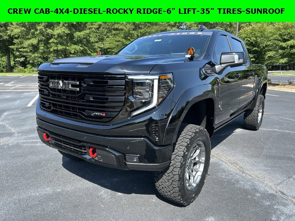 iPhone/ Android Navigation compatible, Automatic Headlights, Rearview Camera, Bluetooth, Leather, Sunroof / Moonroof, Towing Package / Hitch, Lifted and Oversized Tires, Manager's Special, Bedliner, Running Boards, Heated and Vented Front Seats, Heated 2nd Row, Heated Steering Wheel, Remote Starter System, EZ Lift and Lower Tailgate, LED Cargo Box Lighting, Bose Premium Speaker System, Mutli-function Steering Wheel, 4X4, Apple Carplay, ONSTAR, Push Button Start, Remote Keyless Entry, Andoid Auto, Premium Delivery Service Available, ROCKY RIDGE, 6 LIFT, 20 WHEELS, 35 BFG TIRES, LED POD LIGHTS, Sierra 1500 AT4, 4D Crew Cab, 3.0L I6, 4WD, Onyx Black, Jet Black w/Kalahari Accents w/Perforated Front Leather Seat Trim, 120-Volt Bed Mounted Power Outlet, 120-Volt Interior Power Outlet, 2 Charge/Data USB Ports Inside Center Console, 2 Type-C Charge-Only Rear USB Ports, 2 USB Ports, 220 Amp Alternator, 3.23 Rear Axle Ratio, Apple CarPlay/Android Auto, AT4 Preferred Package, AT4 Premium Package, Auto-Locking Rear Differential, Automatic temperature control, Bed View Camera, Black Chrome Grille Insert Bars, Deep-Tinted Glass, Electric Rear-Window Defogger, Emergency communication system: OnStar, Floor-Mounted Center Console, Following Distance Indicator, Forward Collision Alert, Front dual zone A/C, Front Pedestrian Braking, Front Rain-Sensing Wipers, Front reading lights, HD Surround Vision, Heated 2nd Row Outboard Seats, Heated Driver & Front Outboard Passenger Seating, Heated front seats, Heated rear seats, Heated steering wheel, Heavy-Duty Air Filter, Hill Descent Control, Hitch Guidance, Hitch View, In-Vehicle Trailering System App, Integrated Trailer Brake Controller, Keyless Open & Start, Lane Keep Assist w/Lane Departure Warning, LED Cargo Area Lighting, Low tire pressure warning, Multicolor 15 Diagonal Head- Price does not include State/County/Local Tax, Tag, GA Lemon Law or Registration fees. Dealer administrative fee of $489 is included in the price. We offer electronic tag and title as an option for additional fee (this fee is based on what your state/county charge to participate as well as a fee to the company we select to process). A fee may be charged to customers wishing to have vehicle delivered. While we make every effort to ensure the data listed here is correct, there may be instances where some of the factory rebates, incentives, options or vehicle features may be listed incorrectly as we get data from multiple data sources. PLEASE MAKE SURE to confirm the details of this vehicle (such as what factory rebates you may or may not qualify for based on your residence/employment/financing) with the dealer to ensure its accuracy. Dealer can not be held liable for data that is listed incorrectly. You may also qualify for $2500 - Buick and GMC Purchase Loyalty Program. Exp. 11/03/2025 $2750 - Buick & GMC Consumer Cash Program. Exp. 11/03/2025 $500 - GM Bonus Cash. Exp. 11/03/2025 $500 - GM Rewards Card Sales Sign Up and Spend Offer. Exp. 01/02/2026 Savings applied to everyone. Offer includes up to $1500 finance assistance. Not available with special financing, lease and select other offers. Must take new retail delivery by 10/31/2025 Savings applied to everyone. $1500.00 Retail Trade Incentive for current owners trading in 2011 or newer motor vehicle with less than 150,000 miles. Trade must run and drive with valid registration. Not available with special financing, lease and some other offers. Must take new retail delivery by 10/31/2025. Ask