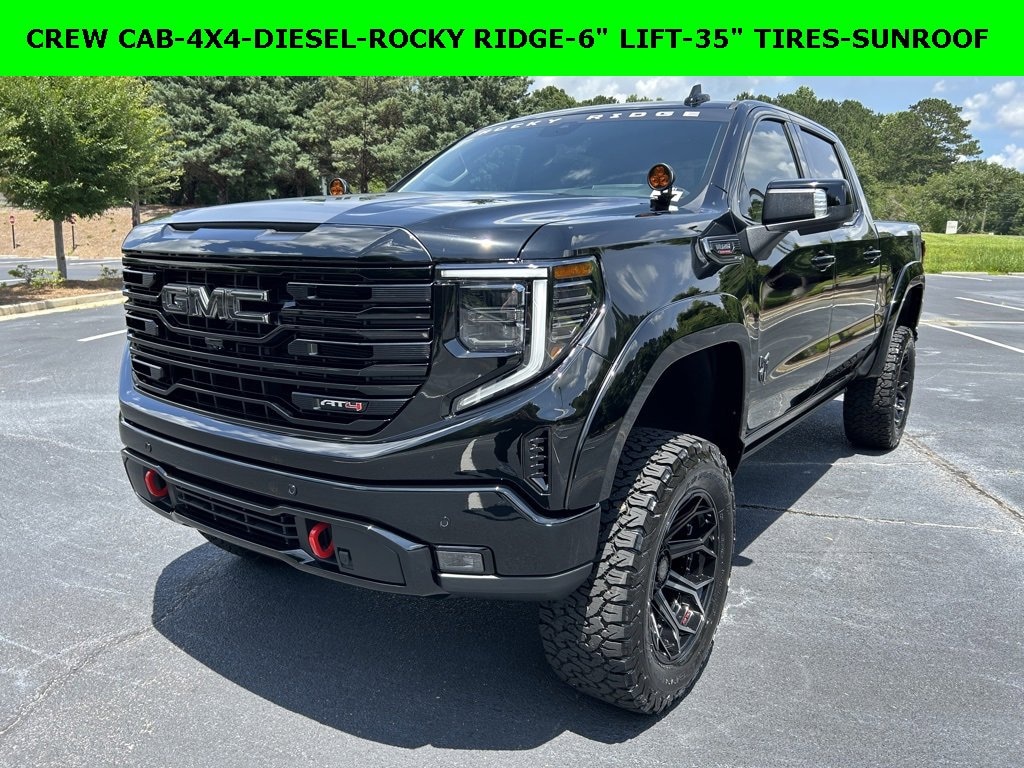 iPhone/ Android Navigation compatible, Automatic Headlights, Rearview Camera, Bluetooth, Leather, Sunroof / Moonroof, Towing Package / Hitch, Lifted and Oversized Tires, Bedliner, Running Boards, Heated and Vented Front Seats, Heated 2nd Row, Heated Steering Wheel, Remote Starter System, LED Cargo Box Lighting, Bose Premium Speaker System, Mutli-function Steering Wheel, 4X4, Apple Carplay, ONSTAR, Push Button Start, Remote Keyless Entry, Andoid Auto, Premium Delivery Service Available, ROCKY RIDGE, 6 LIFT, 20 MACHINED WHEELS, 35 BFG TIRES, Sierra 1500 AT4, 4D Crew Cab, 3.0L I6, 10-Speed Automatic, 4WD, Onyx Black, Jet Black w/Kalahari Accents w/Perforated Front Leather Seat Trim, 120-Volt Bed Mounted Power Outlet, 120-Volt Interior Power Outlet, 2 Charge/Data USB Ports Inside Center Console, 2 Type-C Charge-Only Rear USB Ports, 2 USB Ports, 220 Amp Alternator, 3.23 Rear Axle Ratio, Apple CarPlay/Android Auto, AT4 Preferred Package, AT4 Premium Package, Auto-Locking Rear Differential, Automatic temperature control, Bed View Camera, Black Chrome Grille Insert Bars, Deep-Tinted Glass, Driver Memory, Electric Rear-Window Defogger, Emergency communication system: OnStar, Floor-Mounted Center Console, Following Distance Indicator, Forward Collision Alert, Front dual zone A/C, Front Pedestrian Braking, Front Rain-Sensing Wipers, HD Surround Vision, Heated 2nd Row Outboard Seats, Heated Driver & Front Outboard Passenger Seating, Heated front seats, Heated rear seats, Heated steering wheel, Heavy-Duty Air Filter, Hill Descent Control, Hitch Guidance, Hitch View, In-Vehicle Trailering System App, Integrated Trailer Brake Controller, Keyless Open & Start, Lane Keep Assist w/Lane Departure Warning, LED Cargo Area Lighting, Low tire pressure warning, Memory seat, Multicolor 15 Diagonal Head-Up Display, Navigation Syste Price does not include State/County/Local Tax, Tag, GA Lemon Law or Registration fees. Dealer administrative fee of $489 is included in the price. We offer electronic tag and title as an option for additional fee (this fee is based on what your state/county charge to participate as well as a fee to the company we select to process). A fee may be charged to customers wishing to have vehicle delivered. While we make every effort to ensure the data listed here is correct, there may be instances where some of the factory rebates, incentives, options or vehicle features may be listed incorrectly as we get data from multiple data sources. PLEASE MAKE SURE to confirm the details of this vehicle (such as what factory rebates you may or may not qualify for based on your residence/employment/financing) with the dealer to ensure its accuracy. Dealer can not be held liable for data that is listed incorrectly. You may also qualify for $2500 - Buick and GMC Purchase Loyalty Program. Exp. 11/03/2025 $2750 - Buick & GMC Consumer Cash Program. Exp. 11/03/2025 $500 - GM Bonus Cash. Exp. 11/03/2025 $500 - GM Rewards Card Sales Sign Up and Spend Offer. Exp. 01/02/2026 Savings applied to everyone. Offer includes up to $1500 finance assistance. Not available with special financing, lease and select other offers. Must take new retail delivery by 10/31/2025 Savings applied to everyone. $1500.00 Retail Trade Incentive for current owners trading in 2011 or newer motor vehicle with less than 150,000 miles. Trade must run and drive with valid registration. Not available with special financing, lease and some other offers. Must take new retail delivery by 10/31/2025. Ask