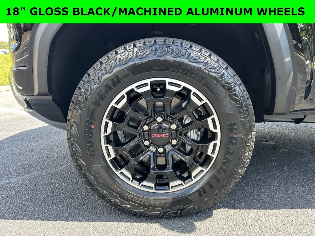 iPhone/ Android Navigation compatible, Automatic Headlights, Rearview Camera, Bluetooth, Heated Front Seats, Remote Starter System, EZ Lift and Lower Tailgate, Mutli-function Steering Wheel, 4X4, Apple Carplay, ONSTAR, Push Button Start, Remote Keyless Entry, Andoid Auto, Premium Delivery Service Available, Canyon AT4, 4D Crew Cab, 4WD, Onyx Black, Jet Black/Timber w/Cloth/CoreTec Seat Trim, 120-Volt Bed Mounted Power Outlet, 2 1st Row USB Charge/Data Ports, 2 Rear USB Ports in Center Console (Charge-Only), 3.42 Rear Axle Ratio, 6-Speaker Audio System Feature, 8-Way Power Driver Seat Adjuster, Apple CarPlay/Android Auto, Automatic Emergency Braking, Automatic temperature control, Blind Zone Steering Assist w/Trailering, Canyon Pro Safety, Canyon Safety Plus Package, Cloth/CoreTec Seat Trim, Driver & Front Passenger Illuminated Visors, Dual-Zone Auto Climate Control Air Conditioning, Emergency communication system: OnStar, EZ-Lift & Lower Tailgate, Following Distance Indicator, Forward Collision Alert, Front dual zone A/C, Front LED Fog Lamps, Front Pedestrian & Bicyclist Braking, Front wheel independent suspension, Heated Driver & Front Passenger Seats, Heated front seats, Inside Rear-View Auto-Dimming Mirror, IntelliBeam Automatic High Beam On/Off, Interior Overhead Courtesy Light w/Dual Reading Lamp, Lane Keep Assist w/Lane Departure Warning, Low tire pressure warning, MultiStow Tailgate Storage Compartment, Navigation System, Power Driver Lumbar Control Seat Adjuster, Power driver seat, Preferred Equipment Group 4SG, Radio: 11.3 Diagonal Premium GMC Infotainment Sys, Rear Cross Traffic Braking, Rear of Console 120-Volt Power Outlet, Remote keyless entry, Remote Vehicle Starter System, SiriusXM w/360L, Tailgate Keyed Cylinder Lock, Tilt & Telescopic Manual Steering Column, Ultrasonic Rear Park Assist, Wheels: 18 x 8.5 Gloss Black, Wireless Apple CarPlay/Wireless Android Auto. 2026 GMC Canyon AT4 Onyx Black 4D Crew Cab 2.7L I4 Turbocharged DOHC 16V LEV3-SULEV30 310hp 4WD 8-Speed Automatic 18/22 City/Highway MPG