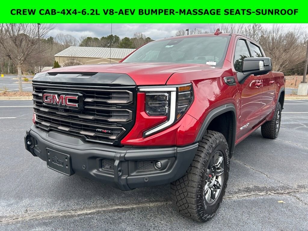 *The Jimmy Britt Premium Delivery Program lets you buy this vehicle right from the comfort of your couch. We frequently deliver vehicles nationwide, and even arrange test drives at home, if you are nearby. We will send you a personal video on any brand new vehicle you are interested in. Call, email, or text us for details.* (Plus, you get our low-price guarantee and two free oil changes and tire rotations!) Factory MSRP: $84,535 Priced below KBB Fair Purchase Price!iPhone/ Android Navigation compatible, Automatic Headlights, Rearview Camera, Bluetooth, Leather, Sunroof / Moonroof, Towing Package / Hitch, Bedliner, Heated and Vented Front Seats, Heated 2nd Row, Heated Steering Wheel, Remote Starter System, LED Cargo Box Lighting, Bose Premium Speaker System, Mutli-function Steering Wheel, 4X4, Apple Carplay, ONSTAR, Push Button Start, Remote Keyless Entry, Andoid Auto, Premium Delivery Service Available, TINT, Sierra 1500 AT4X, 4D Crew Cab, EcoTec3 6.2L V8, 10-Speed Automatic, 4WD, Volcanic Red Tintcoat, Obsidian Rush w/Full Grain Leather Seat Trim, 120-Volt Bed Mounted Power Outlet, 120-Volt Interior Power Outlet, 170 Amp Alternator, 2 Charge/Data USB Ports Inside Center Console, 2 Type-C Charge-Only Rear USB Ports, 2 USB Ports, 3.23 Rear Axle Ratio, Apple CarPlay/Android Auto, Automatic temperature control, Bed View Camera, Deep-Tinted Glass, Driver-Selectable Full-Locking Front Differential, Driver-Selectable Full-Locking Rear Differential, Dual front side impact airbags, Electric Rear-Window Defogger, Emergency communication system: OnStar, Floor-Mounted Center Console, Following Distance Indicator, Forward Collision Alert, Front dual zone A/C, Front Pedestrian Braking, Front Rain-Sensing Wipers, Full Grain Leather Seat Trim, HD Surround Vision, Heads-Up Display, Heated 2nd Row Outboard Seats, Heated front seats, Heated rear seats, Heated steering wheel, Heavy-Duty Air Filter, Hill Descent Control, Hitch Guidance, Hitch View, Integrated Trailer Brake Controller, LED Cargo Area Lighting, Low tire pressure warning, Multicolor 15 Diagonal Head-Up Display, Navigation System, OnStar Services Capable, Perimeter Lighting, Power Door Locks, Power driver seat, Power moonroof, Power passenger seat, Power Sunroof, Preferred Equipment Group 4SG, Push Button Start, Rain sensing wipers, Rear Cross Traffic Braking, Rear Pedestrian Detection, Rear Wheelhouse Liners, Remote keyless entry, Remote Vehicle Starter System, Steering Wheel Audio Controls, Trailer Camera Provisions, Trailer Side Blind Zone Alert, Trailer Tire Pressure Monitor System, Trailering Package, Universal Home Remote, Ventilated front seat Price does not include State/County/Local Tax, Tag, GA Lemon Law or Registration fees. Dealer administrative fee of $489 is included in the price. We offer electronic tag and title as an option for additional fee (this fee is based on what your state/county charge to participate as well as a fee to the company we select to process). A fee may be charged to customers wishing to have vehicle delivered. While we make every effort to ensure the data listed here is correct, there may be instances where some of the factory rebates, incentives, options or vehicle features may be listed incorrectly as we get data from multiple data sources. PLEASE MAKE SURE to confirm the details of this vehicle (such as what factory rebates you may or may not qualify for based on your residence/employment/financing) with the dealer to ensure its accuracy. Dealer can not be held liable for data that is listed incorrectly. You may also qualify for $1750 - Buick & GMC Consumer Cash Program. Exp. 03/31/2026 $3500 - GM Trade In Allowance Program. Exp. 03/31/2026 $500 - Buick GMC Bonus Cash. Exp. 03/31/2026 $500 - GM Rewards Card Sales Sign Up and Spend Offer. Exp. 06/30/2026 Savings applied to everyone. Offer includes up to $1500 finance assistance. Not available with special financing, lease and select other offers. Must take new retail delivery by 02/05/