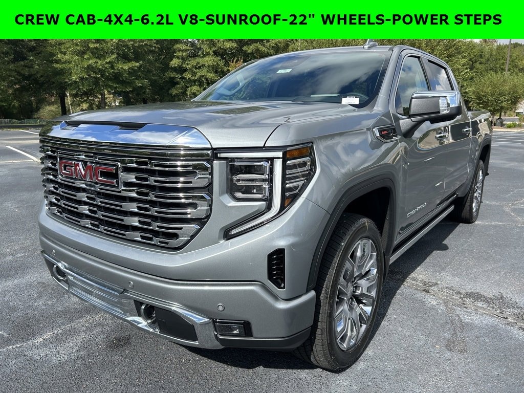 iPhone/ Android Navigation compatible, Automatic Headlights, Rearview Camera, Bluetooth, Leather, Sunroof / Moonroof, Towing Package / Hitch, Bedliner, Running Boards, Heated and Vented Front Seats, Heated 2nd Row, Heated Steering Wheel, Remote Starter System, LED Cargo Box Lighting, Bose Premium Speaker System, Mutli-function Steering Wheel, 4X4, Apple Carplay, ONSTAR, Push Button Start, Remote Keyless Entry, Andoid Auto, Premium Delivery Service Available, Sierra 1500 Denali, 4D Crew Cab, EcoTec3 6.2L V8, 10-Speed Automatic, 4WD, Sterling Metallic, Jet Black w/Perf Leather-Appointed Front Outboard Seat Trim, 120-Volt Bed Mounted Power Outlet, 120-Volt Interior Power Outlet, 170 Amp Alternator, 2 Charge/Data USB Ports Inside Center Console, 2 Type-C Charge-Only Rear USB Ports, 2 USB Ports, 3.23 Rear Axle Ratio, Apple CarPlay/Android Auto, Auto-Locking Rear Differential, Automatic temperature control, Auxiliary External Transmission Oil Cooler, Bed View Camera, Chrome Header w/Signature Denali Chrome Grille, Chrome Recovery Hooks, Deep-Tinted Glass, Denali Reserve Package, Electric Rear-Window Defogger, Emergency communication system: OnStar, Enhanced Automatic Emergency Braking, Floor-Mounted Center Console, Following Distance Indicator, Forge Perforated Leather Seat Trim, Forward Collision Alert, Front dual zone A/C, Front Pedestrian Braking, Front Rain-Sensing Wipers, GMC MultiPro Power Steps, HD Surround Vision, Heated 2nd Row Outboard Seats, Heated Driver & Front Outboard Passenger Seating, Heated front seats, Heated rear seats, Heated steering wheel, Heavy-Duty Air Filter, Hill Descent Control, Hitch Guidance, Hitch View, In-Vehicle Trailering System App, Integrated Trailer Brake Controller, Keyless Open & Start, Lane Keep Assist w/Lane Departure Warning, LED Cargo A Price does not include State/County/Local Tax, Tag, GA Lemon Law or Registration fees. Dealer administrative fee of $489 is included in the price. We offer electronic tag and title as an option for additional fee (this fee is based on what your state/county charge to participate as well as a fee to the company we select to process). A fee may be charged to customers wishing to have vehicle delivered. While we make every effort to ensure the data listed here is correct, there may be instances where some of the factory rebates, incentives, options or vehicle features may be listed incorrectly as we get data from multiple data sources. PLEASE MAKE SURE to confirm the details of this vehicle (such as what factory rebates you may or may not qualify for based on your residence/employment/financing) with the dealer to ensure its accuracy. Dealer can not be held liable for data that is listed incorrectly. You may also qualify for $1750 - Buick & GMC Consumer Cash Program. Exp. 11/03/2025 $3500 - Buick and GMC Purchase Loyalty Program. Exp. 11/03/2025 $500 - GM Bonus Cash. Exp. 11/03/2025 $500 - GM Rewards Card Sales Sign Up and Spend Offer. Exp. 01/02/2026 Savings applied to everyone. Offer includes up to $1500 finance assistance. Not available with special financing, lease and select other offers. Must take new retail delivery by 10/31/2025 Savings applied to everyone. $1500.00 Retail Trade Incentive for current owners trading in 2011 or newer motor vehicle with less than 150,000 miles. Trade must run and drive with valid registration. Not available with special financing, lease and some other offers. Must take new retail delivery by 10/31/2025.