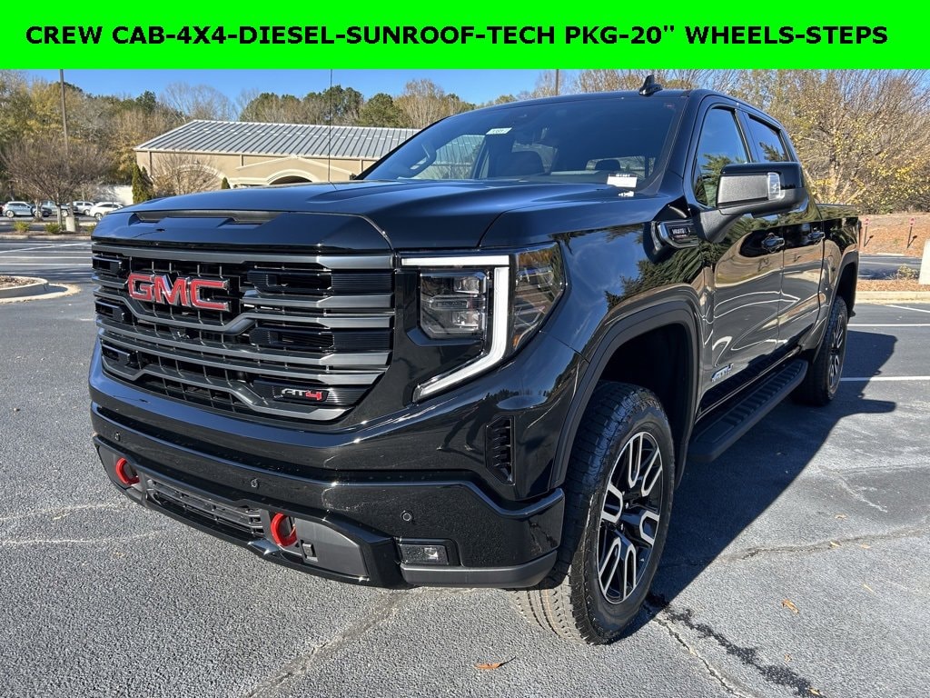 iPhone/ Android Navigation compatible, Automatic Headlights, Rearview Camera, Bluetooth, Leather, Sunroof / Moonroof, Towing Package / Hitch, Bedliner, Running Boards, Heated and Vented Front Seats, Heated 2nd Row, Heated Steering Wheel, Remote Starter System, LED Cargo Box Lighting, Bose Premium Speaker System, Mutli-function Steering Wheel, 4X4, Apple Carplay, ONSTAR, Push Button Start, Remote Keyless Entry, Andoid Auto, Premium Delivery Service Available, Sierra 1500 AT4, 4D Crew Cab, 3.0L I6, 10-Speed Automatic, 4WD, Onyx Black, Jet Black w/Kalahari Accents w/Perforated Front Leather Seat Trim, 120-Volt Bed Mounted Power Outlet, 120-Volt Interior Power Outlet, 2 Charge/Data USB Ports Inside Center Console, 2 Type-C Charge-Only Rear USB Ports, 2 USB Ports, 220 Amp Alternator, 3.23 Rear Axle Ratio, Apple CarPlay/Android Auto, AT4 Preferred Package, AT4 Premium Package, Auto-Locking Rear Differential, Automatic temperature control, Bed View Camera, Black Chrome Grille Insert Bars, Deep-Tinted Glass, Electric Rear-Window Defogger, Emergency communication system: OnStar, Floor-Mounted Center Console, Following Distance Indicator, Forward Collision Alert, Front dual zone A/C, Front Pedestrian Braking, Front Rain-Sensing Wipers, Front wheel independent suspension, HD Surround Vision, Heated 2nd Row Outboard Seats, Heated Driver & Front Outboard Passenger Seating, Heated front seats, Heated rear seats, Heated steering wheel, Heavy-Duty Air Filter, Hill Descent Control, Hitch Guidance, Hitch View, In-Vehicle Trailering System App, Integrated Trailer Brake Controller, Keyless Open & Start, Lane Keep Assist w/Lane Departure Warning, LED Cargo Area Lighting, Low tire pressure warning, Multicolor 15 Diagonal Head-Up Display, Navigation System, Off-Road High Clearance Step (LPO), OnStar Services Capable, Overhead airbag, Perforated Front Leather Seat Trim, Perimeter Lighting, Power Door Locks, Power Front Passenger Windows w/Express Up/Down, Power Front Windows w/Driver Express Up/Down, Power passenger seat, Power Rake & Telescoping Steering Column, Power Rear Windows w/Express Down Price does not include State/County/Local Tax, Tag, GA Lemon Law or Registration fees. Dealer administrative fee of $489 is included in the price. We offer electronic tag and title as an option for additional fee (this fee is based on what your state/county charge to participate as well as a fee to the company we select to process). A fee may be charged to customers wishing to have vehicle delivered. While we make every effort to ensure the data listed here is correct, there may be instances where some of the factory rebates, incentives, options or vehicle features may be listed incorrectly as we get data from multiple data sources. PLEASE MAKE SURE to confirm the details of this vehicle (such as what factory rebates you may or may not qualify for based on your residence/employment/financing) with the dealer to ensure its accuracy. Dealer can not be held liable for data that is listed incorrectly. You may also qualify for $1500 - Buick & GMC Consumer Cash Program. Exp. 01/02/2026 $250 - December Buick GMC Holiday Event Bonus Cash. Exp. 01/02/2026 $2500 - GM Trade In Allowance Program. Exp. 01/02/2026 $500 - GM Bonus Cash. Exp. 01/02/2026 $500 - GM Rewards Card Sales Sign Up and Spend Offer. Exp. 01/02/2026 Savings applied to everyone. Offer includes up to $1500 finance assistance. Not available with special financing, lease and select othe