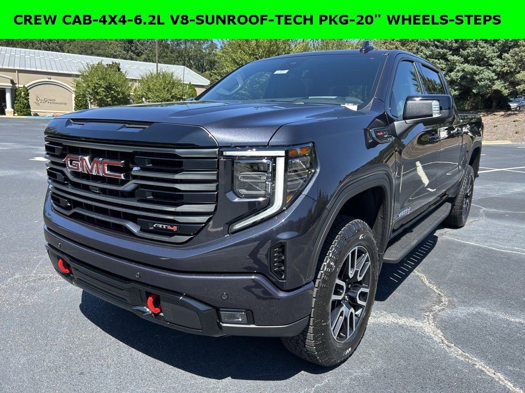 iPhone/ Android Navigation compatible, Automatic Headlights, Rearview Camera, Bluetooth, Leather, Sunroof / Moonroof, Towing Package / Hitch, Bedliner, Running Boards, Heated and Vented Front Seats, Heated 2nd Row, Heated Steering Wheel, Remote Starter System, LED Cargo Box Lighting, Bose Premium Speaker System, Mutli-function Steering Wheel, 4X4, Apple Carplay, ONSTAR, Push Button Start, Remote Keyless Entry, Andoid Auto, Premium Delivery Service Available, Sierra 1500 AT4, 4D Crew Cab, EcoTec3 6.2L V8, 10-Speed Automatic, 4WD, Titanium Rush Metallic, Jet Black With Kalahari Accents Leather, 120-Volt Bed Mounted Power Outlet, 120-Volt Interior Power Outlet, 170 Amp Alternator, 2 Charge/Data USB Ports Inside Center Console, 2 Type-C Charge-Only Rear USB Ports, 2 USB Ports, 3.23 Rear Axle Ratio, Apple CarPlay/Android Auto, AT4 Preferred Package, AT4 Premium Package, Auto-Locking Rear Differential, Automatic temperature control, Bed View Camera, Black Chrome Grille Insert Bars, Buckle to Drive, Deep-Tinted Glass, Electric Rear-Window Defogger, Emergency communication system: OnStar, Floor-Mounted Center Console, Following Distance Indicator, Forward Collision Alert, Front dual zone A/C, Front Pedestrian Braking, Front Rain-Sensing Wipers, HD Surround Vision, Heated 2nd Row Outboard Seats, Heated Driver & Front Outboard Passenger Seating, Heated front seats, Heated rear seats, Heated steering wheel, Heavy-Duty Air Filter, Hill Descent Control, Hitch Guidance, Hitch View, In-Vehicle Trailering System App, Integrated Trailer Brake Controller, Keyless Open & Start, Lane Keep Assist w/Lane Departure Warning, LED Cargo Area Lighting, Low tire pressure warning, Multicolor 15 Diagonal Head-Up Display, Navigation System, Off-Road High Clearance Step (LPO), OnStar Services Capable, Perforated Front Leather Seat Trim, Perimeter Lighting, Power Door Locks, Pow Price does not include State/County/Local Tax, Tag, GA Lemon Law or Registration fees. Dealer administrative fee of $489 is included in the price. We offer electronic tag and title as an option for additional fee (this fee is based on what your state/county charge to participate as well as a fee to the company we select to process). A fee may be charged to customers wishing to have vehicle delivered. While we make every effort to ensure the data listed here is correct, there may be instances where some of the factory rebates, incentives, options or vehicle features may be listed incorrectly as we get data from multiple data sources. PLEASE MAKE SURE to confirm the details of this vehicle (such as what factory rebates you may or may not qualify for based on your residence/employment/financing) with the dealer to ensure its accuracy. Dealer can not be held liable for data that is listed incorrectly. You may also qualify for $1000 - Buick and GMC Purchase Loyalty Program. Exp. 11/03/2025 $1750 - Buick & GMC Consumer Cash Program. Exp. 11/03/2025 $500 - GM Rewards Card Sales Sign Up and Spend Offer. Exp. 01/02/2026 Savings applied to everyone. Offer includes up to $1500 finance assistance. Not available with special financing, lease and select other offers. Must take new retail delivery by 10/31/2025 Savings applied to everyone. $1500.00 Retail Trade Incentive for current owners trading in 2011 or newer motor vehicle with less than 150,000 miles. Trade must run and drive with valid registration. Not available with special financing, lease and some other offers. Must take new retail delivery by 10/31/2025. A