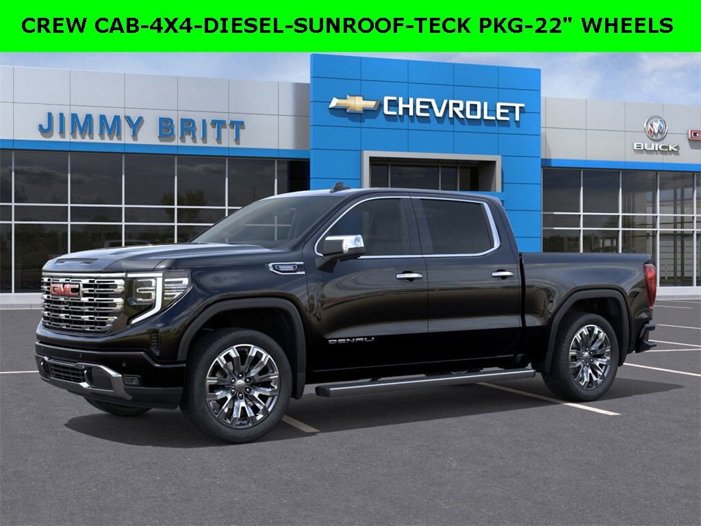 *The Jimmy Britt Premium Delivery Program lets you buy this vehicle right from the comfort of your couch. We frequently deliver vehicles nationwide, and even arrange test drives at home, if you are nearby. We will send you a personal video on any brand new vehicle you are interested in. Call, email, or text us for details.* (Plus, you get our low-price guarantee and two free oil changes and tire rotations!) Factory MSRP: $77,150Automatic Headlights, Rearview Camera, Bluetooth, Leather, Sunroof / Moonroof, Towing Package / Hitch, Heated and Vented Front Seats, Heated 2nd Row, Heated Steering Wheel, Remote Starter System, LED Cargo Box Lighting, Bose Premium Speaker System, Mutli-function Steering Wheel, 4X4, ONSTAR, Push Button Start, Remote Keyless Entry, Premium Delivery Service Available, Sierra 1500 Denali, 4D Crew Cab, 3.0L I6, 4WD, Onyx Black, Jet Black w/Perf Leather-Appointed Front Outboard Seat Trim, 120-Volt Bed Mounted Power Outlet, 120-Volt Interior Power Outlet, 2 Charge/Data USB Ports Inside Center Console, 2 Type-C Charge-Only Rear USB Ports, 2 USB Ports, 220 Amp Alternator, 3.23 Rear Axle Ratio, Auto-Locking Rear Differential, Automatic temperature control, Auxiliary External Transmission Oil Cooler, Bed View Camera, Chrome Header w/Signature Denali Chrome Grille, Chrome Recovery Hooks, Chrome Wheel To Wheel Assist Steps, Deep-Tinted Glass, Denali Reserve Package, Electric Rear-Window Defogger, Emergency communication system: OnStar, Enhanced Automatic Emergency Braking, Floor-Mounted Center Console, Following Distance Indicator, Forge Perforated Leather Seat Trim, Forward Collision Alert, Front dual zone A/C, Front Pedestrian Braking, Front Rain-Sensing Wipers, GMC MultiPro Power Steps, HD Surround Vision, Heated 2nd Row Outboard Seats, Heated Driver & Front Outboard Passenger Seating, Heated front seats, Heated rear seats, Heated steering wheel, Heavy-Duty Air Filter, Hill Descent Control, Hitch Guidance, Hitch View, In-Vehicle Trailering System App, Integrated Trailer Brake Controller, Keyless Open & Start, Lane Keep Assist w/Lane Departure Warning, LED Cargo Area Lighting, Low tire pressure warning, Multicolor 15 Diagonal Head-Up Display, Navigation System, OnStar Services Capable, Perimeter Lighting, Power Door Locks, Power driver seat, Power Front Passenger Windows w/Express Up/Down, Power Front Windows w/Driver Express Up/Down, Power passenger seat, Power Rake & Telescoping Steering Column, Power Rear Windows w/Express Down, Power Sliding Rear Window w/Rear Defogger, Power Sunroof, Preferred Equipment Group 5SA, Premium Bose 7-Speaker Sound System, Push Button Start, Rain sensing wipers, Rear Camera Mirror, Rear Cross Traffic Braking, Rear Pedestrian Detection, Rear Wheelhouse Price does not include State/County/Local Tax, Tag, GA Lemon Law or Registration fees. Dealer administrative fee of $489 is included in the price. We offer electronic tag and title as an option for additional fee (this fee is based on what your state/county charge to participate as well as a fee to the company we select to process). A fee may be charged to customers wishing to have vehicle delivered. While we make every effort to ensure the data listed here is correct, there may be instances where some of the factory rebates, incentives, options or vehicle features may be listed incorrectly as we get data from multiple data sources. PLEASE MAKE SURE to confirm the details of this vehicle (such as what factory rebates you may or may not qualify for based on your residence/employment/financing) with the dealer to ensure its accuracy. Dealer can not be held liable for data that is listed incorrectly. You may also qualify for $1750 - Buick & GMC Consumer Cash Program. Exp. 12/01/2025 $250 - GM Military Appreciation Month Cash Allowance Program. Exp. 12/01/2025 $2500 - Buick and GMC Purchase Loyalty Program. Exp. 12/01/2025 $500 - GM Bonus Cash. Exp. 12/01/2025 $500 - GM Rewards Card Sales Sign Up and Spend Offer. Exp. 01/02/2