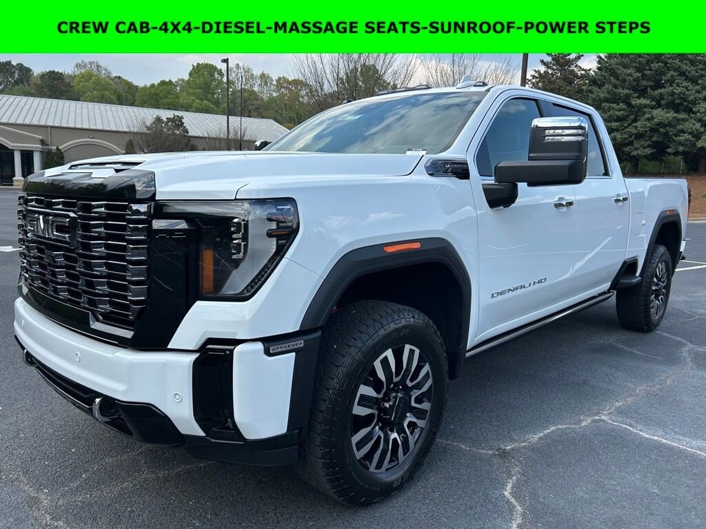 iPhone/ Android Navigation compatible, Automatic Headlights, Rearview Camera, Bluetooth, Leather, Sunroof / Moonroof, Towing Package / Hitch, Bedliner, Running Boards, Heated and Vented Front Seats, Heated 2nd Row, Heated Steering Wheel, Remote Starter System, LED Cargo Box Lighting, Bose Premium Speaker System, Mutli-function Steering Wheel, 4X4, Extended Warranty Available, Apple Carplay, ONSTAR, Push Button Start, Remote Keyless Entry, Andoid Auto, Premium Delivery Service Available, Sierra 2500HD Denali Ultimate, 4D Crew Cab, Duramax 6.6L V8 Turbodiesel, 10-Speed Automatic, 4WD, Summit White, Alpine Umber w/Full Grain Leather Seat Trim, 120-Volt Bed Mounted Power Outlet, 120-Volt Instrument Panel Power Outlet, 2 Charge-Only Rear USB Ports, 2 Charge/Data USB Ports Inside Center Console, 2 USB Ports, 2-Speed Active Transfer Case, 3.42 Axle Ratio, Apple CarPlay/Android Auto, Automatic temperature control, Bed View Camera with Two Trailer Camera Provisions, Bose Premium Series 12-Speaker System, Deep-Tinted Glass, Electric Rear-Window Defogger, Emergency communication system: OnStar, Floor-Mounted Center Console, Following Distance Indicator, Forward Collision Alert, Front dual zone A/C, Front Pedestrian Braking, Front Rain-Sensing Wipers, Full Grain Leather Seat Trim, Gooseneck/5th Wheel Prep Package, HD Surround Vision, Heads-Up Display, Heated 2nd Row Outboard Seats, Heated Driver and Front Outboard Passenger Seats, Heated front seats, Heated rear seats, Heated steering wheel, Hitch Guidance with Hitch View, in-Vehicle Trailering System App, Inside Rearview Auo-Dimming Rear Camera Mirror, Keyless Open and Start, Lane Departure Warning System, LED Cargo Area Lighting, LED Smoked Amber Roof Marker Lamps, Low tire pressure warning, Manual Tilt-Wheel/Telescoping Steering Column, Multicolor 15 Diagonal Head-Up Display, Navigation System, OnStar Services Capable, Pickup Box, Price does not include State/County/Local Tax, Tag, GA Lemon Law or Registration fees. Dealer administrative fee of $489 is included in the price. We offer electronic tag and title as an option for additional fee (this fee is based on what your state/county charge to participate as well as a fee to the company we select to process). A fee may be charged to customers wishing to have vehicle delivered. While we make every effort to ensure the data listed here is correct, there may be instances where some of the factory rebates, incentives, options or vehicle features may be listed incorrectly as we get data from multiple data sources. PLEASE MAKE SURE to confirm the details of this vehicle (such as what factory rebates you may or may not qualify for based on your residence/employment/financing) with the dealer to ensure its accuracy. Dealer can not be held liable for data that is listed incorrectly. You may also qualify for $1000 - Buick & GMC Consumer Cash Program. Exp. 04/30/2026 $500 - GM Rewards Card Sales Sign Up and Spend Offer. Exp. 06/30/2026 Savings applied to everyone. $1500.00 Retail Trade Incentive for current owners trading in 2011 or newer motor vehicle with less than 150,000 miles. Trade must run and drive with valid registration. Not available with special financing, lease and some other offers. Must take new retail delivery by 02/05/2026. Ask Dealer representative for details on qualification Savings applied to everyone. Offer includes up to $1500 finance assistance. Not available with special financing, lease and select othe