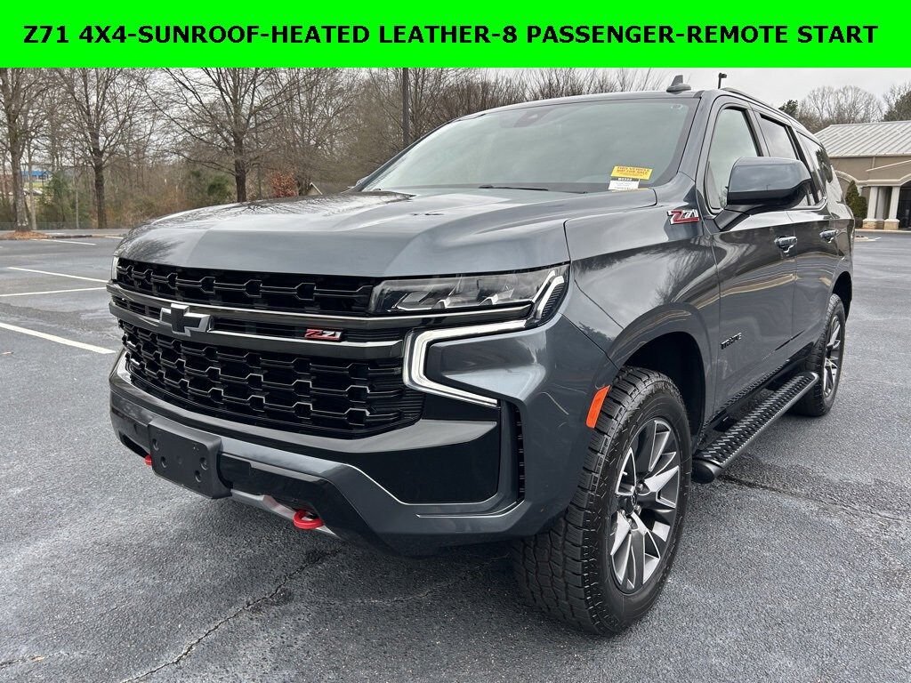 *The Jimmy Britt Premium Delivery Program lets you buy this vehicle right from the comfort of your couch. We frequently deliver vehicles nationwide, and even arrange test drives at home, if you are nearby. We will send you a personal video on any vehicle you are interested in. Call, email, or text us for details.* (Plus, you get our low-price guarantee and 2 free oil changes and tire rotations!) Ask for the vehicle history report! Odometer is 47603 miles below market average! Priced below KBB Fair Purchase Price!iPhone/ Android Navigation compatible, Automatic Headlights, Rearview Camera, Bluetooth, Leather, 1 Owner, Sunroof / Moonroof, Towing Package / Hitch, Running Boards, Heated Front Seats, Heated Steering Wheel, Remote Starter System, Bose Premium Speaker System, Mutli-function Steering Wheel, 4X4, Extended Warranty Available, Apple Carplay, ONSTAR, 3rd Row Seats, Push Button Start, Remote Keyless Entry, Andoid Auto, Premium Delivery Service Available, Tahoe Z71, 4D Sport Utility, EcoTec3 5.3L V8, 4WD, Shadow Gray Metallic, Jet Black w/Perforated Leather Seat Trim, 2 USB Data Ports, 2-Speed Active Electronic AutoTrac Transfer Case, 3.23 Rear Axle Ratio, Apple CarPlay/Android Auto, Auto-Dimming Inside Rear-View Mirror, Automatic temperature control, Black Tubular Assist Steps, Bose 9-Speaker Stereo Audio System Feature, Bright Front & Rear Door Sill Plates, Dual front side impact airbags, Dual-Pane Power Panoramic Sunroof, Emergency communication system: OnStar and Chevrolet connected services capable, Floor Console w/Storage Area, Front dual zone A/C, Front High-Approach Angle Fascia, Hands-Free Rear Power Programmable Liftgate, HD Radio, Heated Driver & Front Passenger Seats, Heated front seats, Hill Descent Control, Infotainment Display, Leather Seat Trim, Leather-Wrapped Steering Wheel, LED Daytime Running Lamps, Low tire pressure warning, Memory Settings for Driver, Power driver seat, Power Liftgate, Power passenger seat, Preferred Equipment Group 2Z7, Rain sensing wipers, Rear air conditioning, Rear anti-roll bar, Red Horizontal-Mounted Recovery Hooks, Remote keyless entry, Remote Start, SiriusXM Radio w/360L, Universal Home Remote, Wheels: 20 x 9 Machined Aluminum, Wireless Charging.Shadow Gray Metallic 2021 Chevrolet Tahoe Z71 EcoTec3 5.3L V8 4WDAwards:* JD Power Automotive Performance, Execution and Layout (APEAL) Study * ALG Residual Value The Jimmy Britt Automotive Family has received multiple Dealer of the Year awards in the state of Georgia. We've also been awarded the Customer Satisfaction Award through DealerRater! Price does not include State/County/Local Tax, Tag, GA Lemon Law or Registration fees. Dealer administrative fee is included in the price. We offer electronic tag and title as an option for an additional fee (this fee is based on what your state/county charge to participate as well as a fee to the company we select to process). A fee may be charged to customers wishing to have the vehicle delivered. Preowned Vehicles - All preowned inventory is As Is unless GM Certified or otherwise stated in writing. While we make every effort to ensure the data listed here is correct, there may be instances where some of the factory rebates, incentives, options, or vehicle features may be listed incorrectly as we get data from multiple data sources.
