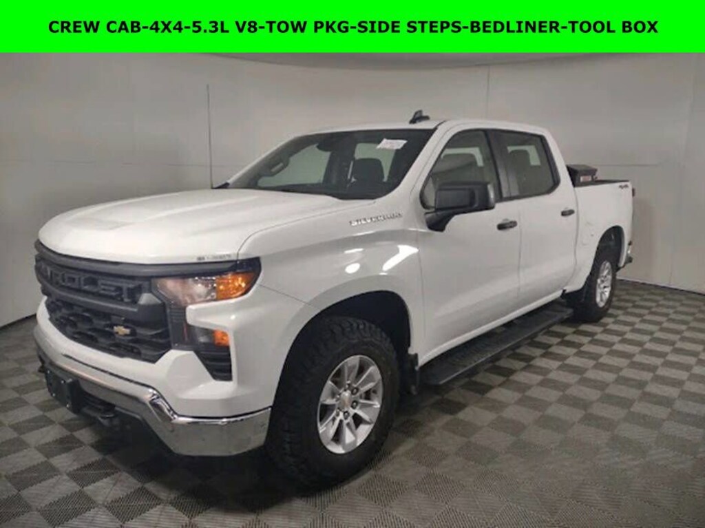 One Owner, Clean Autocheck / No Accidents, Extended Warranty Available, Bluetooth / Hands-free, Apple Car Play / Android Auto Compatible, Back-Up Camera w/ Guidelines, Portable Audio Connection, Premium Wheels, Multi-function Steering Wheel, Trailer Hitch, 4x4/4WD, Spray-in Bedliner, Apple Carplay, Android Auto, *Premium Delivery Service Available*, iphone / Droid Navigation Compatible, 4D Crew Cab, EcoTec3 5.3L V8, 10-Speed Automatic, 4WD, Summit White, Jet Black w/Vinyl Seat Trim, 3.5 Monochromatic Display Driver Info Center, Black (Semi-Gloss) Front Bumper, Black (Semi-Gloss) Rear Bumper, Black Manual Outside Mirrors, Bluetooth® For Phone, Deep-Tinted Glass, Electric Rear-Window Defogger, Electronic Cruise Control, Front Frame-Mounted Black Recovery Hooks, HD Rear Vision Camera, Heated Power-Adjustable Outside Mirrors, Hitch Guidance, Inside Rear-View Mirror w/Tilt, Locking Tailgate, Manual Tailgate Function w/No EZ Lift, Manual Tilt Wheel Steering Column, OnStar & Chevrolet Connected Services Capable, Power Front Windows w/Driver Express Up/Down, Power Front Windows w/Passenger Express Down, Power Rear Windows w/Express Down, Preferred Equipment Group 1WT, Rear 60/40 Folding Bench Seat (Folds Up), Remote Keyless Entry, Rubberized-Vinyl Floor Covering, SiriusXM Delete, Solar Absorbing Tinted Glass, Standard Suspension Package, Standard Tailgate, Trailering Package, Wheels: 17 x 8 Bright Silver Painted Aluminum, WT Convenience Package.