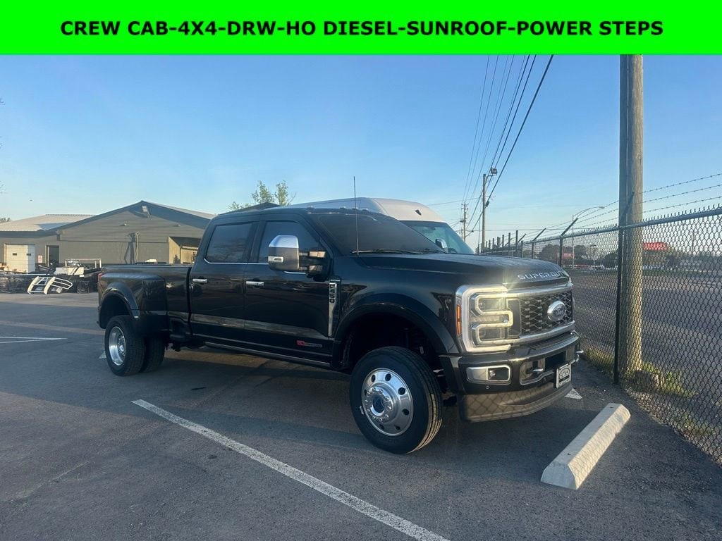 NEW ARRIVAL PHOTOS COMING SOON!, iPhone/ Android Navigation compatible, Automatic Headlights, Rearview Camera, Bluetooth, Leather, Clean History Report!, 1 Owner, Sunroof / Moonroof, Towing Package / Hitch, Bedliner, Running Boards, Heated and Vented Front Seats, Heated 2nd Row, Heated Steering Wheel, Remote Starter System, EZ Lift and Lower Tailgate, LED Cargo Box Lighting, Mutli-function Steering Wheel, 4X4, Includes the Remainder of the Factory Warranty, Extended Warranty Available, Apple Carplay, Push Button Start, Remote Keyless Entry, Andoid Auto, Premium Delivery Service Available, F-450SD Platinum, 4D Crew Cab, Power Stroke 6.7L V8 DI 32V OHV Turbodiesel, 10-Speed Automatic, 4WD, Agate Black Metallic, Black Onyx w/Unique Platinum Leather 40/Console/40 Seats, Dual rear wheels, GVWR: 14,000 lb Payload Package, Navigation system: Connected Navigation, Order Code 773A, Tough Bed Spray-In Bedliner, Twin Panel Power Moonroof.