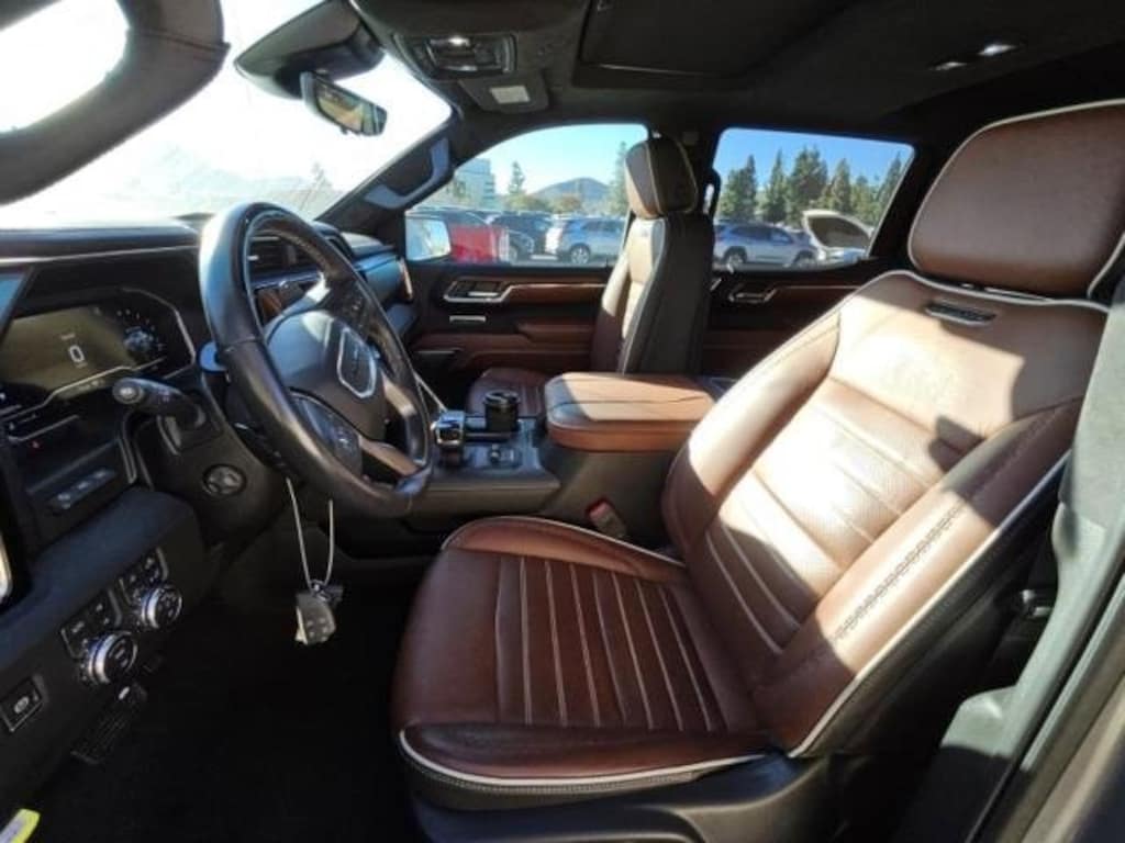 NEW ARRIVAL PHOTOS COMING SOON!, iPhone/ Android Navigation compatible, Automatic Headlights, Rearview Camera, Bluetooth, Leather, Sunroof / Moonroof, Towing Package / Hitch, Bedliner, Running Boards, Heated and Vented Front Seats, Heated 2nd Row, Heated Steering Wheel, Remote Starter System, EZ Lift and Lower Tailgate, LED Cargo Box Lighting, Bose Premium Speaker System, Mutli-function Steering Wheel, 4X4, Includes the Remainder of the Factory Warranty, Extended Warranty Available, Apple Carplay, ONSTAR, Push Button Start, Remote Keyless Entry, Andoid Auto, Premium Delivery Service Available, Sierra 1500 Denali Ultimate, 4D Crew Cab, EcoTec3 6.2L V8, 10-Speed Automatic, 4WD, Sterling Metallic, Alpine Umber w/Full Grain Leather Seat Trim, 120-Volt Interior Power Outlet, 2 Charge/Data USB Ports Inside Center Console, 2 Type-C Charge-Only Rear USB Ports, 2 USB Ports, Auto-Locking Rear Differential, Bed View Camera, Bose Premium Series w/12-Speaker System, Cargo Convenience Package, Chrome Recovery Hooks, Color-Keyed Carpeting Floor Covering, Console-Mounted Safe (LPO), Deep-Tinted Glass, Floor-Mounted Center Console, Front Rain-Sensing Wipers, GMC Connected Access Capable, HD Surround Vision, Heated 2nd Row Outboard Seats, Heated Driver & Front Outboard Passenger Seating, Heavy-Duty Air Filter, Hill Descent Control, Hitch View, In-Vehicle Trailering System App, Integrated Trailer Brake Controller, Keyless Open & Start, LED Cargo Area Lighting, Low tire pressure warning, Multicolor 15 Diagonal Head-Up Display, MultiPro Tailgate Audio System by Kicker (LPO), Navigation System, OnStar & GMC Connected Services Capable, Perimeter Lighting, Power Front Passenger Windows w/Express Up/Down, Power Front Windows w/Driver Express Up/Down, Power Rake & Telescoping Steering Column, Power Rear Windows w/Express Down, Power Sliding Rear Window w/Rear Defogger, Power Sunroof, Preferred Equipment Group 5SB, Push Button Start, Rear Cross Traffic Braking, Rear Pedestrian Detection, Rear Underseat Storage (LPO), Rear Wheelhouse Liners, Remote Vehicle Starter System, SiriusXM w/360L, Spray-On Pickup Bedliner w/Denali Logo, Steering Wheel Audio Controls, Theft Deterrent System (Unauthorized Entry), Trailer Camera Provisions, Trailer Side Blind Zone Alert, Trailer Tire Pressure Monitor System, Trailering Package, Ultrasonic Front & Rear Park Assist, Universal Home Remote, Vader Chrome Header w/Signature Denali Grille, Ventilated Driver & Front Passenger Seats, Wheels: 22 7-Spoke Ultra-Bright Machined, Wi-Fi Hotspot Capable, Wireless Charging.