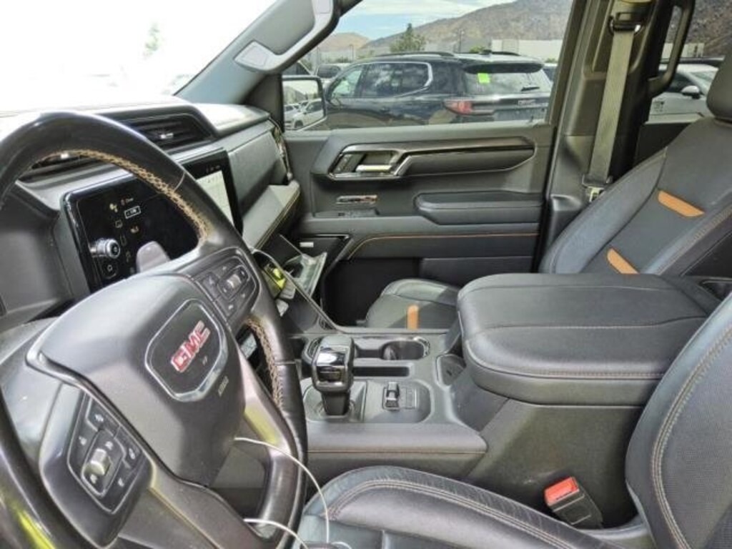 NEW ARRIVAL PHOTOS COMING SOON!, iPhone/ Android Navigation compatible, Automatic Headlights, Rearview Camera, Bluetooth, Leather, Towing Package / Hitch, Bedliner, Running Boards, Heated and Vented Front Seats, Heated 2nd Row, Heated Steering Wheel, Remote Starter System, EZ Lift and Lower Tailgate, LED Cargo Box Lighting, Bose Premium Speaker System, Mutli-function Steering Wheel, 4X4, Includes the Remainder of the Factory Warranty, Extended Warranty Available, Apple Carplay, ONSTAR, Push Button Start, Remote Keyless Entry, Andoid Auto, Premium Delivery Service Available, Sierra 1500 AT4, 4D Crew Cab, EcoTec3 6.2L V8, 10-Speed Automatic, 4WD, Thunderstorm Gray, Jet Black w/Kalahari Accents w/Perforated Front Leather Seat Trim, 120-Volt Interior Power Outlet, 2 Charge/Data USB Ports Inside Center Console, 2 Type-C Charge-Only Rear USB Ports, 2 USB Ports, 220 Amp Alternator, AT4 Preferred Package, AT4 Premium Package, Auto-Locking Rear Differential, Bed View Camera, Black Chrome Header & Grille Insert Bars, Color-Keyed Carpeting Floor Covering, Deep-Tinted Glass, Electric Rear-Window Defogger, Floor-Mounted Center Console, Front Prem Floor Liners w/Removable Carpet Insert, Front Rain-Sensing Wipers, GMC Connected Access Capable, HD Surround Vision, Heated 2nd Row Outboard Seats, Heated Driver & Front Outboard Passenger Seating, Heavy-Duty Air Filter, Hill Descent Control, Hitch View, In-Vehicle Trailering System App, Integrated Trailer Brake Controller, Keyless Open & Start, LED Cargo Area Lighting, Multicolor 15 Diagonal Head-Up Display, Navigation System, Off-Road High Clearance Step (LPO), OnStar & GMC Connected Services Capable, Perimeter Lighting, Power Front Passenger Windows w/Express Up/Down, Power Front Windows w/Driver Express Up/Down, Power Rake & Telescoping Steering Column, Power Rear Windows w/Express Down, Power Sliding Rear Window w/Rear Defogger, Preferred Equipment Group 4SB, Premium Bose 7-Speaker Sound System, Push Button Start, Rear Camera Mirror, Rear Cross Traffic Braking, Rear Pedestrian Detection, Rear Wheelhouse Liners, Red Recovery Hooks, Remote Vehicle Starter System, SiriusXM w/360L, Spray-On Pickup Bedliner w/AT4 Logo, Steering Wheel Audio Controls, Technology Package, Theft Deterrent System (Unauthorized Entry), Trailer Camera Provisions, Trailer Side Blind Zone Alert, Trailering Package, Ultrasonic Front & Rear Park Assist, Universal Home Remote, Ventilated Driver & Front Passenger Seats, Wheels: 20 x 9 Machined Aluminum, Wi-Fi Hotspot Capable, Wireless Charging.