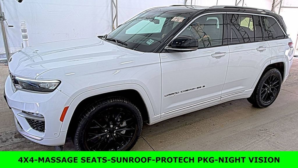 One Owner, Clean Autocheck / No Accidents, Factory Certified Preowned, Remaining Factory Warranty, Extended Warranty Available, Bluetooth / Hands-free, Apple Car Play / Android Auto Compatible, Surround-View Camera w/ Guidelines, Heated Seats, Keyless Entry, Leather Seats, Multi-Zone Climate Control, Navigation, Portable Audio Connection, Premium Audio, Premium Wheels, Security System, Multi-function Steering Wheel, Sunroof / Moonroof, 4x4/4WD, Remote Start, Apple Carplay, Android Auto, Cooled Seats, *Premium Delivery Service Available*, iphone / Droid Navigation Compatible, Grand Cherokee Summit, 4D Sport Utility, 4WD, Bright White Clearcoat, Steel Gray/Global Black w/Nappa Leather Seats or Nappa Leather Seats w/AAM, 2nd-Row Manual Window Shades, ADV Protech Group IV, Heads-Up Display, Luxury Tech Group V, Navigation System, Night Vision w/Pedestrian-Animal Detection, Power moonroof, Quick Order Package 22S, Rearview Autodim Digital Display Mirror, Wheels: 20 x 8.5 Fully Painted Aluminum Silver, Wireless Charging Pad.