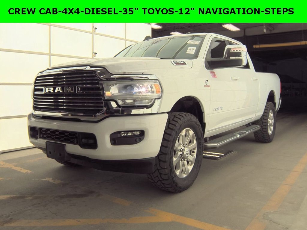 One Owner, Clean Autocheck / No Accidents, Remaining Factory Warranty, Extended Warranty Available, Bluetooth / Hands-free, Apple Car Play / Android Auto Compatible, Back-Up Camera w/ Guidelines, Heated Seats, Keyless Entry, Leather Seats, Multi-Zone Climate Control, Navigation, Portable Audio Connection, Premium Audio, Premium Wheels, Multi-function Steering Wheel, Trailer Hitch, 4x4/4WD, Remote Start, Spray-in Bedliner, Apple Carplay, Android Auto, Cooled Seats, Oversized Tires, *Premium Delivery Service Available*, iphone / Droid Navigation Compatible, 35 TOYO R/T TIRES, 2500 Laramie, 4D Crew Cab, Cummins 6.7L I6 Turbodiesel, 4WD, Bright White Clearcoat, Black w/Leather Trim 40/20/40 Bench Seat or Leather Trimmed Bucket Seats, 12 Touchscreen Display, 20 x 8.0 Polished Aluminum Wheels, 220 Amp Alternator, 2nd Row In Floor Storage Bins, 4G LTE Wi-Fi Hot Spot, Alexa Built-In, Apple CarPlay, Auto Adjust In Reverse Exterior Mirrors, Auto Dim Exterior Mirror, Auto High Beam Headlamp Control, Auto Power-Folding Mirrors, Auto-Dimming Exterior Passenger Mirror, Bed Utility Group, Blind Spot & Cross Path Detection, Center Hub, Chrome Exterior Mirrors, Cold Weather Group, Connected Travel & Traffic Services, Connectivity - US/Canada, Diesel Exhaust Brake, Disassociated Touchscreen Display, Engine Block Heater, Exterior Mirrors Courtesy Lamps, Exterior Mirrors w/Heating Element, Exterior Mirrors w/Memory, Exterior Mirrors w/Supplemental Signals, Foam Bottle Insert (Door Trim Panel), For Details, Visit DriveUconnect.com, For More Info, Call 800-643-2112, Forward & Reverse Utility Lights, Front LED Fog Lamps, Front Performance Tuned Shock Absorbers, Global Telematics Box Module (TBM), Google Android Auto, GPS Antenna Input, GPS Navigation, HD Radio, Heavy Duty Snow Plow Prep Group, Hill Descent Control, Integrated Voice Command w/Bluetooth, Laramie Level 1 Equipment Group, LED Bed Lighting, LED Reflector Headlamps, Mirror Running Lights, MOPAR Deployable Bed Step, MOPAR Spray In Bedliner, MOPAR Winter Front Grille Cover, Navigation System, Off Road Package, Off-Road Information Pages, ParkSense Front/Rear Park Assist System, Power Adjust Mirrors, Power Adjustable Convex Aux Mirrors, Power Adjustable Pedals w/Memory, Power Heated Fold Telescopic Mirrors w/Memory, Power Telescoping Mirrors, Quick Order Package 2HH Laramie, Radio: Uconnect 5 Nav w/12.0 Display, Radio/Driver Seat/Mirrors/Pedals Memory, Rain Sensitive Windshield Wipers, Rear Performance Tuned Shock Absorbers, Rear Power Sliding Window, Rear Window Defroster, Remote Tailgate Release, Selectable Tire Fill Alert, SiriusXM Radio Service, SiriusXM w/360L, Tow Hooks, Trailer Tow Pages.