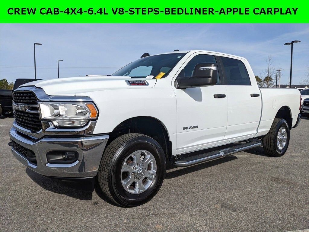 One Owner, Clean Autocheck / No Accidents, Factory Certified Preowned, Extended Warranty Available, Bluetooth / Hands-free, Apple Car Play / Android Auto Compatible, Back-Up Camera w/ Guidelines, Cruise Control, Portable Audio Connection, Premium Wheels, Multi-function Steering Wheel, Trailer Hitch, 4x4/4WD, Apple Carplay, Android Auto, *Premium Delivery Service Available*, iphone / Droid Navigation Compatible, DROP IN BEDLINER, 2500 Big Horn, 4D Crew Cab, 4WD, Bright White Clearcoat, Diesel Gray/Black w/Cloth 40/20/40 Bench Seat or Premium Cloth 40/20/40 Bench Seat or Heavy Duty Vinyl 40/20/40 Split Bench Seat or Premium Cloth Bucket Seats, 2 Way Rear Headrest Seat, 2nd Row In Floor Storage Bins, 3.73 Axle Ratio, 40/20/40 Split Bench Seat, 4G LTE Wi-Fi Hot Spot, 8.4 Touchscreen Display, Apple CarPlay, Auto Power-Folding Mirrors, Big Horn IP Badge, Black Exterior Mirrors, Bluetooth Handsfree Phone & Audio, Cloth 40/20/40 Bench Seat, Connectivity - US/Canada, Dual Glove Boxes, Emergency communication system: SiriusXM Guardian, Exterior Mirrors Courtesy Lamps, Exterior Mirrors w/Heating Element, Exterior Mirrors w/Supplemental Signals, Foam Bottle Insert (Door Trim Panel), Footwell Courtesy Lamp, For Details, Visit DriveUconnect.com, For More Info, Call 800-643-2112, Forward & Reverse Utility Lights, Front Armrest w/Cupholders, Front Fog Lamps, Global Telematics Box Module (TBM), Glove Box Lamp, Google Android Auto, GPS Antenna Input, Integrated Voice Command w/Bluetooth, Leather Wrapped Steering Wheel, Level 1 Equipment Group, Locking Lower Glove Box, Low tire pressure warning, Manual Adjust 4-Way Driver Seat, Manual Adjust 4-Way Front Passenger Seat, Mirror Running Lights, ParkView Rear Back-Up Camera, Power Adjust Mirrors, Power Adjustable Convex Aux Mirrors, Power Heated Fold Telescope Mirrors, Power Telescoping Mirrors, Premium Cloth 40/20/40 Bench Seat, Quick Order Package 2GZ Big Horn, Radio: Uconnect 5 W w/8.4 Display (A62), Rear anti-roll bar, Rear Dome w/On/Off Switch Lamp, Rear Folding Seat, Remote keyless entry, Remote USB Port - Charge Only, Selectable Tire Fill Alert, SiriusXM Radio Service, SiriusXM Satellite Radio, Steering Wheel Mounted Audio Controls, Wheels: 18 x 8.0 Polished Aluminum.