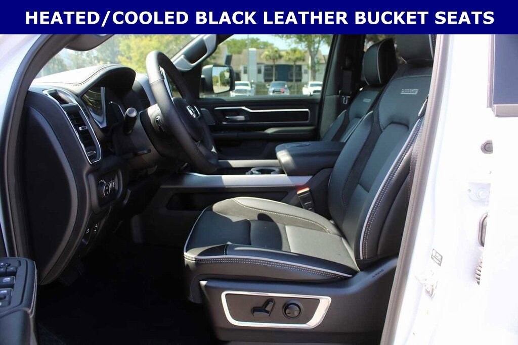 Bluetooth / Hands-free, Apple Car Play / Android Auto Compatible, Back-Up Camera w/ Guidelines, Cruise Control, Heated Seats, Leather Seats, Multi-Zone Climate Control, Navigation, Portable Audio Connection, Power Locks, Power Windows, Premium Audio, Premium Wheels, Security System, Multi-function Steering Wheel, 4x4/4WD, Level I Equipment Group, Apple Carplay, Android Auto, Cooled Seats, *Premium Delivery Service Available*, iphone / Droid Navigation Compatible, 1500 Laramie, 4D Crew Cab, 3.0L I6, 4WD, Ivory White Tri-Coat Pearlcoat, Black w/Leather Trimmed Bucket Seats, 3.92 Rear Axle Ratio, 4G LTE Wi-Fi Hot Spot, Accent Color Door Handles, Accent Color Premium Power Mirrors, Accent Color Tailgate Handle, AM/FM radio: SiriusXM with 360L, Anti-Spin Differential Rear Axle, Apple CarPlay/Android Auto, Audio memory, Auto Power-Folding Mirrors, Auto-Dimming Exterior Driver Mirror, Auto-dimming Rear-View mirror, Automatic temperature control, Black Exterior Truck Badging, Black Headlamp Bezels, Black Interior Accents, Black Painted Exterior Mirrors Caps, Black Tail Lamp Bezels, Body Color Front Bumper, Connectivity - US/Canada, Convex Wide-Angle Exterior Mirror Insert, Exterior Mirrors Approach Lamps, Exterior Mirrors Courtesy Lamps, Front dual zone A/C, Front wheel independent suspension, GPS Navigation, Grille Surround 3 Black Texture 2 Black, Heated front seats, Heated rear seats, Heated steering wheel, Integrated Center Stack Radio, Laramie Level 1 Equipment Group, Leather Trimmed Bucket Seats, Low tire pressure warning, Navigation System, Night Edition, ParkView Rear Back-Up Camera, Power driver seat, Power passenger seat, Proximity Approach/Departure Lamps, Quick Order Package 21H Laramie, Rain Sensitive Windshield Wipers, RAM Grille Badge - Black, Rear anti-roll bar, Remote keyless entry, Remote Tailgate Release, SiriusXM Radio Service, Sport Performance Hood, Trailer Brake Control, Ventilated front seats, Wheels: 22 x 9 Forged Aluminum.